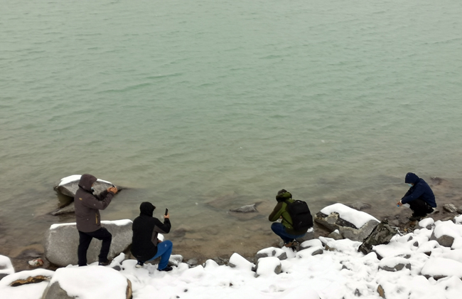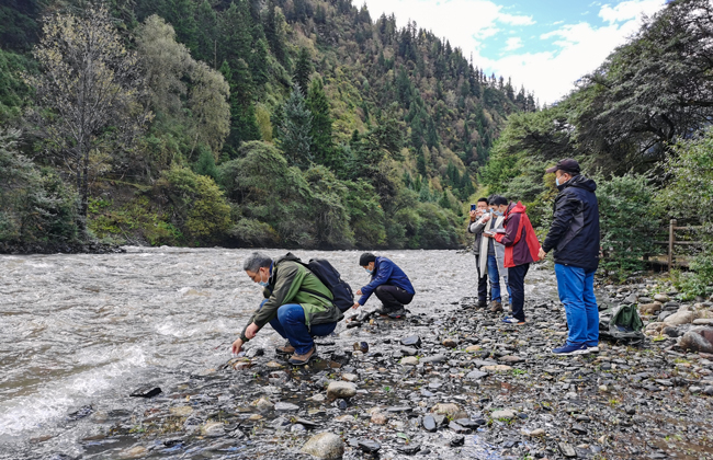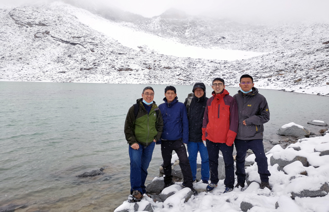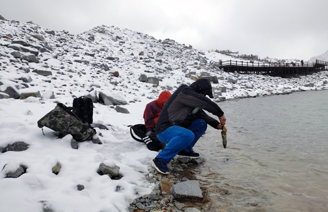 團(tuán)隊(duì)專家一行首先詳細(xì)了解了達(dá)古冰川景區(qū)近年來科研工作開展情況以及科研基礎(chǔ)設(shè)施建設(shè)情況,并就雙方目前合作領(lǐng)域進(jìn)行了探討。隨后,專家們查看了不同海拔的自動(dòng)氣象站,并對達(dá)古冰川的快速退縮進(jìn)行了考察,采集了河流和湖泊水體、沉積物、新降雪等樣品。同時(shí)對達(dá)古冰川周邊的生態(tài)環(huán)境、地貌、水文等進(jìn)行了考察。