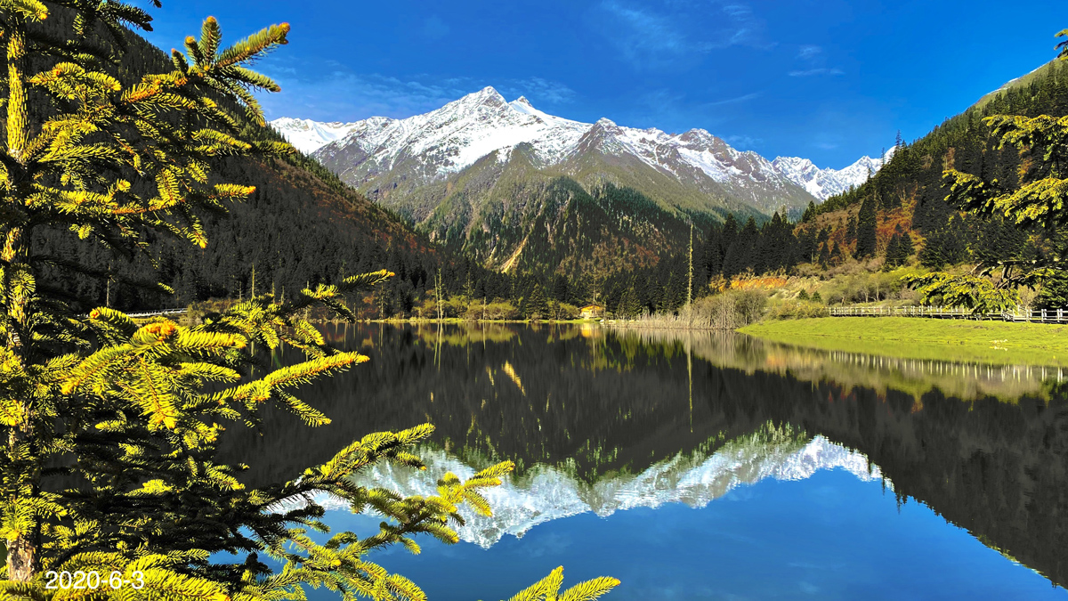 達古湖是由千年冰川融化的冰水匯聚而成,湖色隨季節而變幻。
