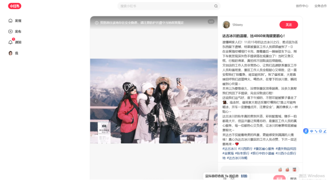 11月15日,該游客在達(dá)古冰川打卡后,不慎將深色手提袋遺落在觀景臺(tái),待乘坐最后一趟纜車下山后才發(fā)現(xiàn)。彼時(shí)行程緊張,游客又急又慌,擔(dān)心耽誤后續(xù)路程。景區(qū)檢查站值班人員見狀迅速響應(yīng),聯(lián)系景區(qū)工作人員幫游客尋找遺失的手提袋,檢查站值班工作人員李某更是熱情邀請游客進(jìn)屋烤火、喝熱水,短時(shí)間內(nèi)便成功找回手提袋,未對游客行程造成任何影響。臨行前,值班工作人員還細(xì)心叮囑沿途路段可能有暗冰,提醒游客駕車注意安全。這份遠(yuǎn)超預(yù)期的暖心服務(wù),讓游客在欣賞冰川絕美冬景的同時(shí),更感受到家人般的關(guān)懷,成為旅途最難忘的記憶。