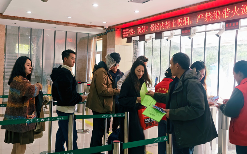 深化溫馨服務(wù)內(nèi)涵,展現(xiàn)景區(qū)人文關(guān)懷。達(dá)古冰川管理局將服務(wù)做細(xì)做實(shí),于細(xì)微處彰顯景區(qū)好客形象。營造文化視覺空間,在游客中心、博物館、公共衛(wèi)生間等區(qū)域,精心懸掛12幅展現(xiàn)達(dá)古冰川核心景觀的攝影畫作,使游客在休憩間隙也能“看圖識(shí)景”,提前領(lǐng)略冰川魅力,增強(qiáng)了游覽的預(yù)熱與導(dǎo)引功能。提供周全便民物資,針對游客實(shí)際需求,設(shè)計(jì)制作并免費(fèi)發(fā)放《景區(qū)導(dǎo)覽圖》及宣傳拉頁各1萬份,確保游覽信息獲取無障礙。為應(yīng)對寒冷天氣,在游客密集區(qū)域新增安裝1臺(tái)全天候開水器、在游客中心衛(wèi)生間安裝8臺(tái)熱水器,傳遞了景區(qū)的溫度與關(guān)懷。實(shí)施精細(xì)環(huán)衛(wèi)管理,環(huán)衛(wèi)作業(yè)實(shí)行“動(dòng)態(tài)巡回保潔”模式,確保路面、廣場無可見垃圾,并及時(shí)清理草坪干枯雜草,維護(hù)整潔優(yōu)美的游覽環(huán)境。提升景觀花卉養(yǎng)護(hù)質(zhì)量,采購花卉托盤300個(gè)、高效低毒病蟲害防治藥水10瓶,通過科學(xué)管護(hù)延長了鮮花觀賞期。保障高效投訴處理,建立游客投訴快速響應(yīng)機(jī)制,對于如“重復(fù)購票”等典型問題,一經(jīng)核實(shí)確認(rèn),立即啟動(dòng)退款程序,做到第一時(shí)間響應(yīng)、第一時(shí)間處置、第一時(shí)間反饋,切實(shí)保障了游客權(quán)益,將服務(wù)糾紛化解于萌芽狀態(tài)。